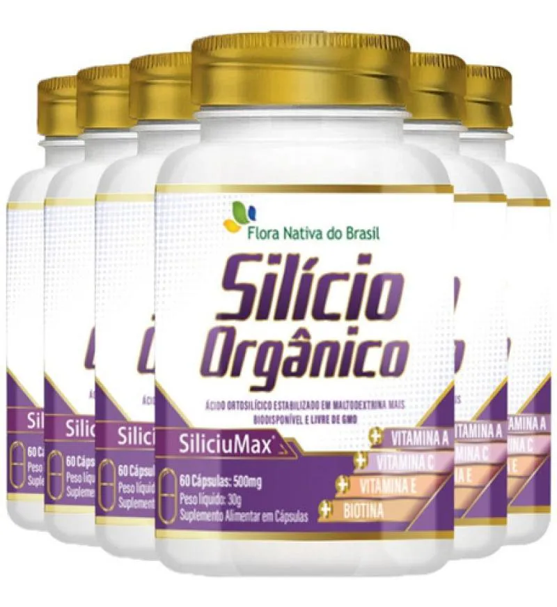 Kit 6 Silicio Organico e Vitaminas 500 Mg 60 Capsulas - Flora Nativa A