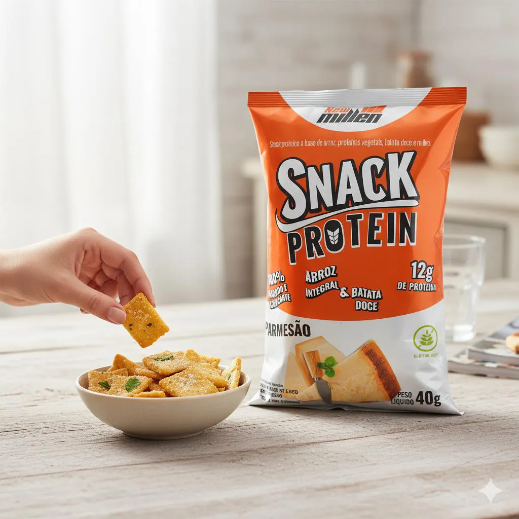 O Snack Protein da New Millen é o lançamento perfeito para quem busca uma opção de lanche saudável, proteico e extremamente saboroso. Cada porção deste salgadinho crocante fornece 12g de proteínas vegetais, combinando proteína básica de ervilha, farinha de batata doce, e proteína de arroz. Assado com óleo de coco, o Snack Protein é livre de glúten e lactose, sendo ideal para pessoas com restrições alimentares ou que buscam enriquecer a dieta de forma prática e deliciosa. Disponível nos sabores irresistíveis de Parmesão, e Presunto, este lanche é perfeito para qualquer hora do dia, proporcionando energia e satisfação sem comprometer a qualidade nutricional. Composição e Ingredientes - Proteína Isolada de Ervilha - Farinha de Batata Doce - Proteína de Arroz - Proteína Concentrada de Soja - Óleo de Coco - Aroma Idêntico ao Natural- Não contém glúten.