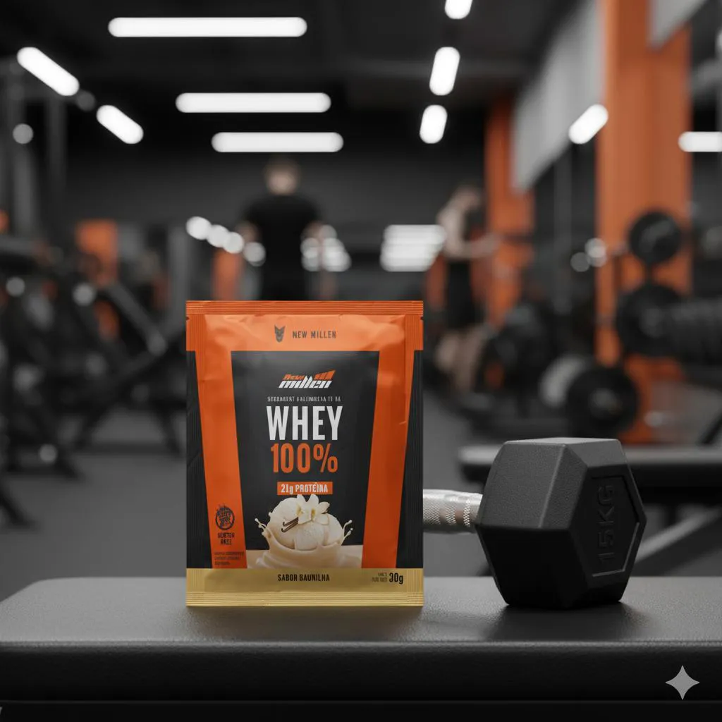 O Whey 100% em sachê de 30g da New Millen é um suplemento proteico desenvolvido para fornecer proteínas de alta qualidade, auxiliando no ganho de massa muscular magra e na recuperação pós-treino. Formulado com proteína concentrada do soro do leite (WPC), este produto oferece uma fonte rica em aminoácidos essenciais, incluindo