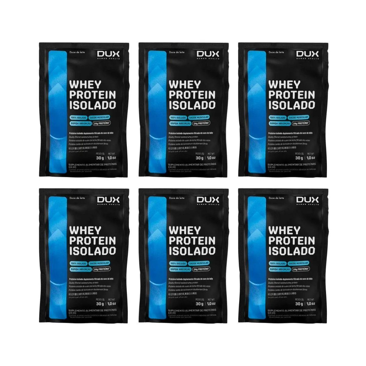 Kit 6 Whey Protein 24G Proteina Isolado Sache Doce de Leite Dux