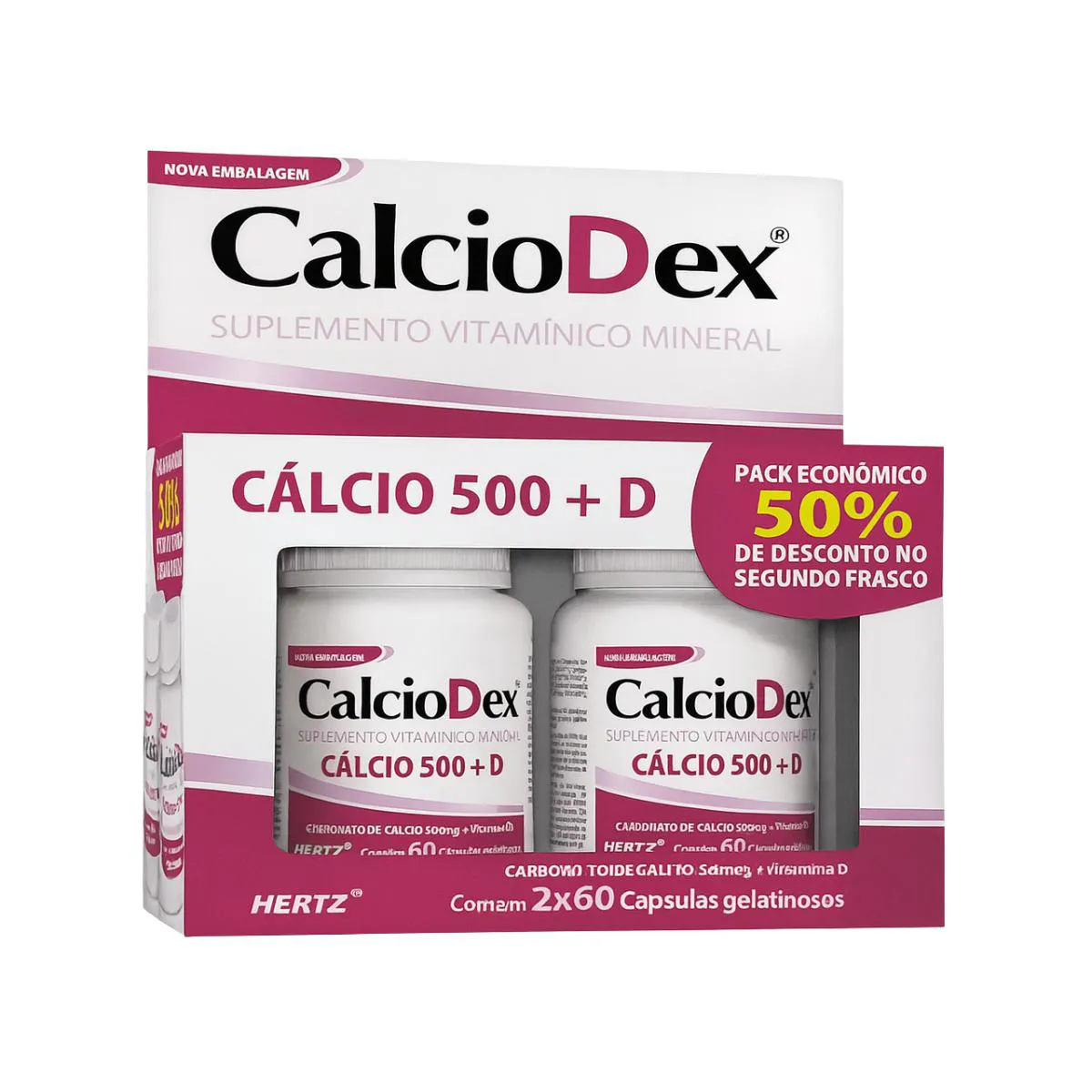 Diferenciais do produto: Combinação de cálcio com vitamina D3 em cápsulas gelatinosas