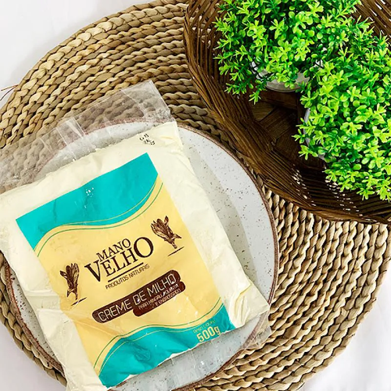 O Creme de Milho Natural Mano Velho é feito apenas de milho não transgênico, ideal para veganos e vegetarianos. Sem glúten, sem lactose, sem conservantes e livre de gordura trans e saturadas.