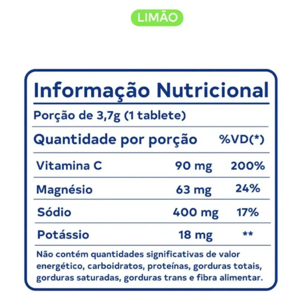 - Sabor limão, refrescante e agradável.