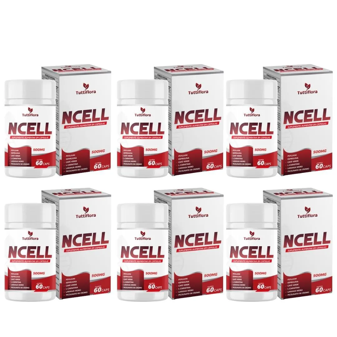 Kit 6x NCELL (Psyllium, Espirulina, Café Verde, L-Carnitina, Laranja Moro e Cromo) 60 Cápsulas Tuttiflora