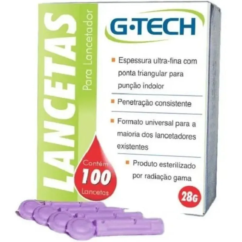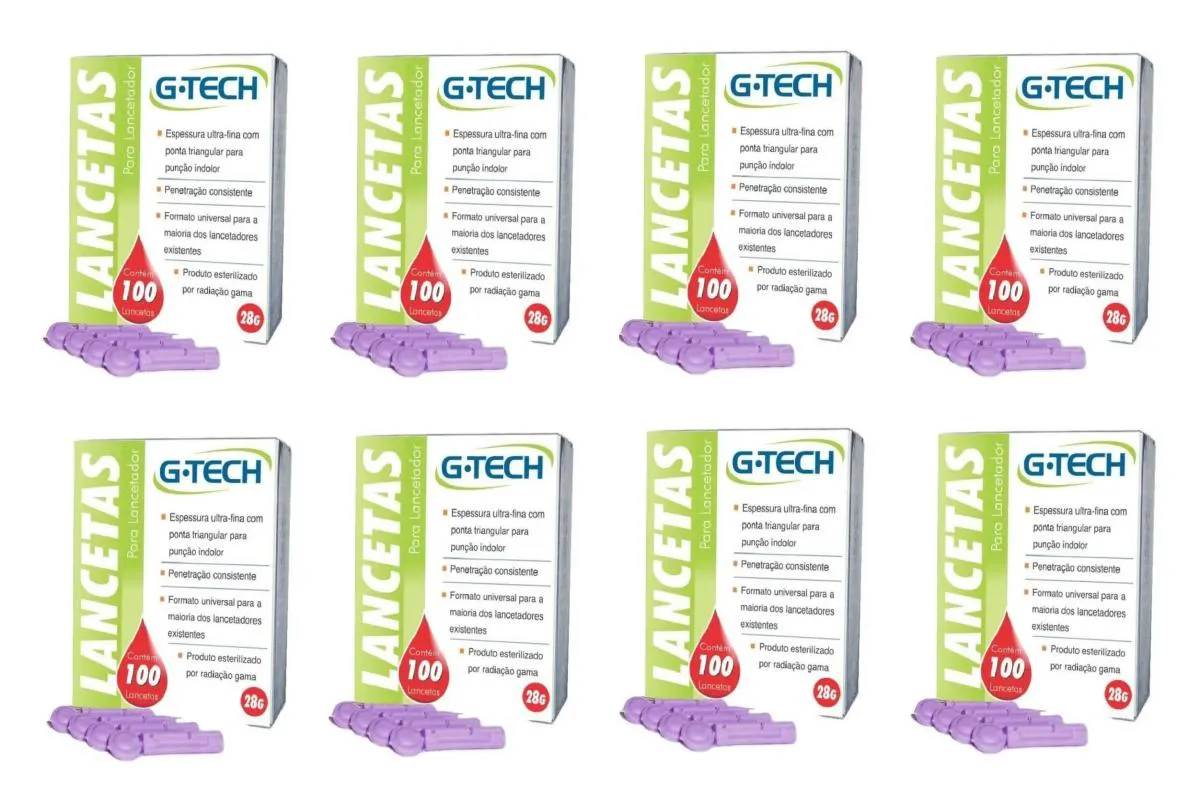 Kit 8 Lanceta para Lancetador Fina G-tech Glicemia 28g 100Un