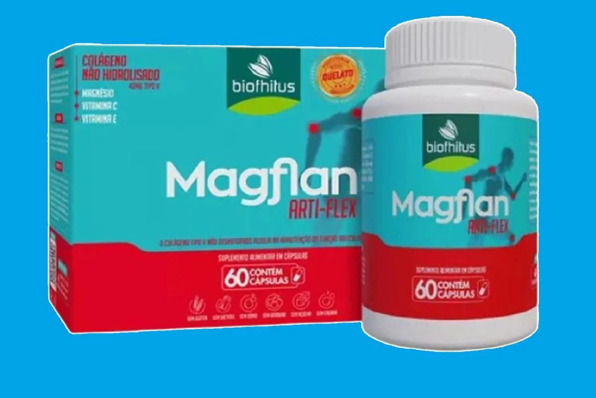 Magflan Arti-flex é um suplemento alimentar composto por nutrientes com o colágeno tipo II não desnaturado, Magnésio Quelato, vitamina c e vitamina e.