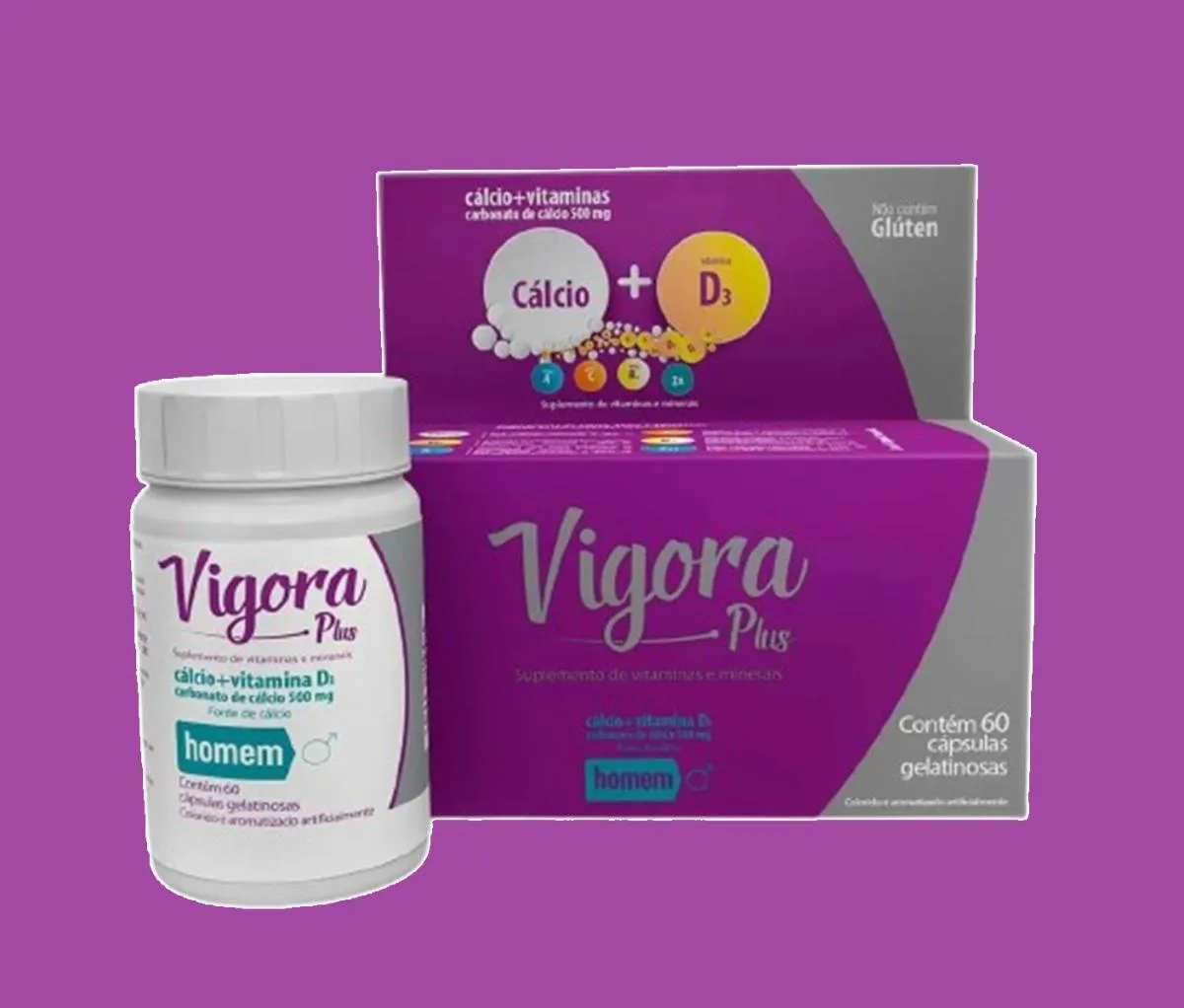 Kit 8 Vigora Plus Homem Cálcio Calcium +vit D3 C/ 60 cápsulas