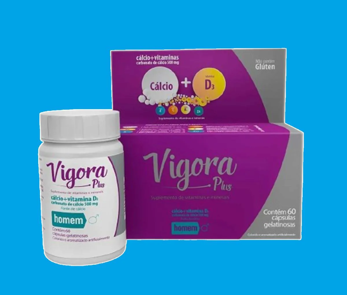 KIT 8 VIGORA PLUS HOMEM CáLCIO CALCIUM +VIT D3 C/ 60 CáPS