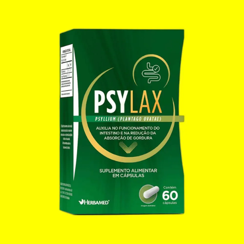 Suplemento alimentar à base de psyllium (Plantago ovata), uma fibra alimentar que contribui no funcionamento do intestino.