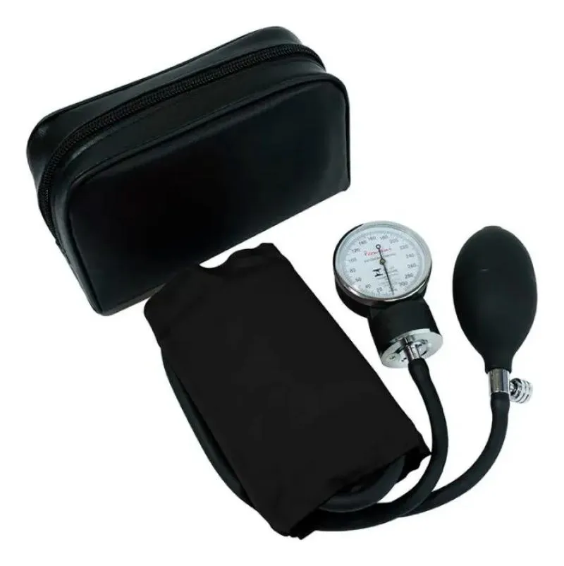 O esfigmomanômetro aneróide é um equipamento médico utilizado para medir a pressão arterial, com braçadeira adulto padrão, verificado e aprovado pelo INMETRO para garantir precisão nas medições.