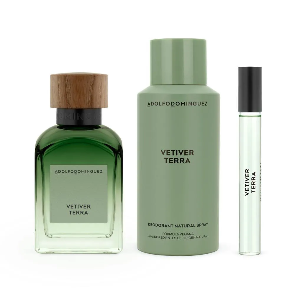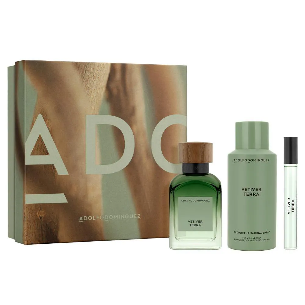 Kit Adolfo Dominguez Vetiver Terra Eau de Parfum Perfume Masculino 120Ml + Desodorante 150Ml + Miniatura 10Ml