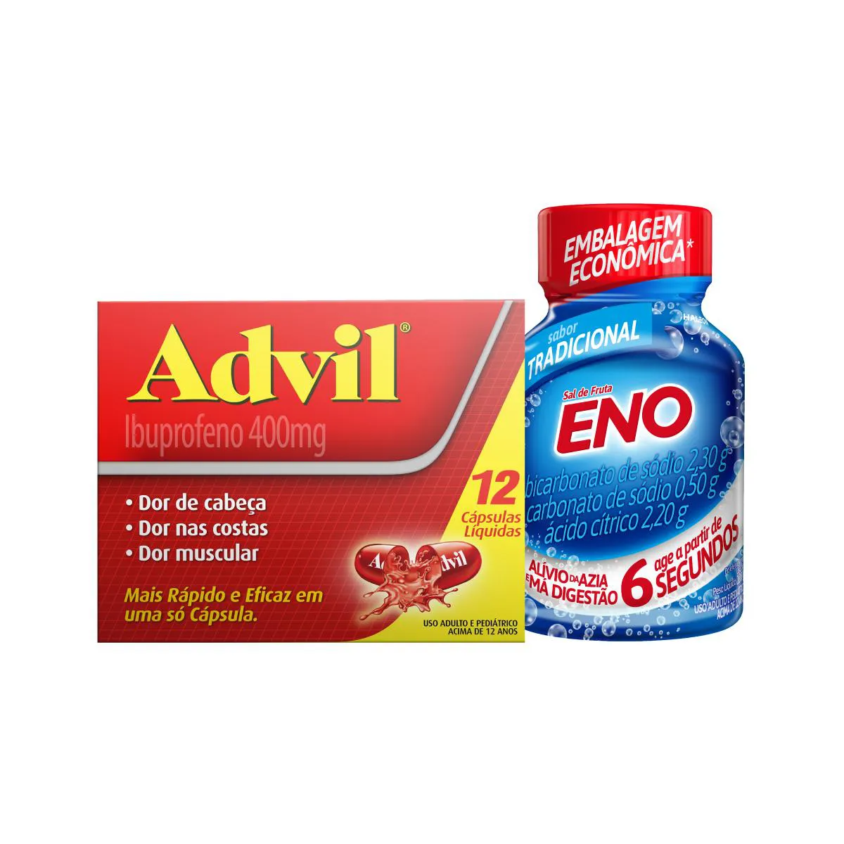 Kit Advil Ibuprofeno 400mg 12 cápsulas + Sal de Fruta Eno Tradicional Pó Efervescente 100g