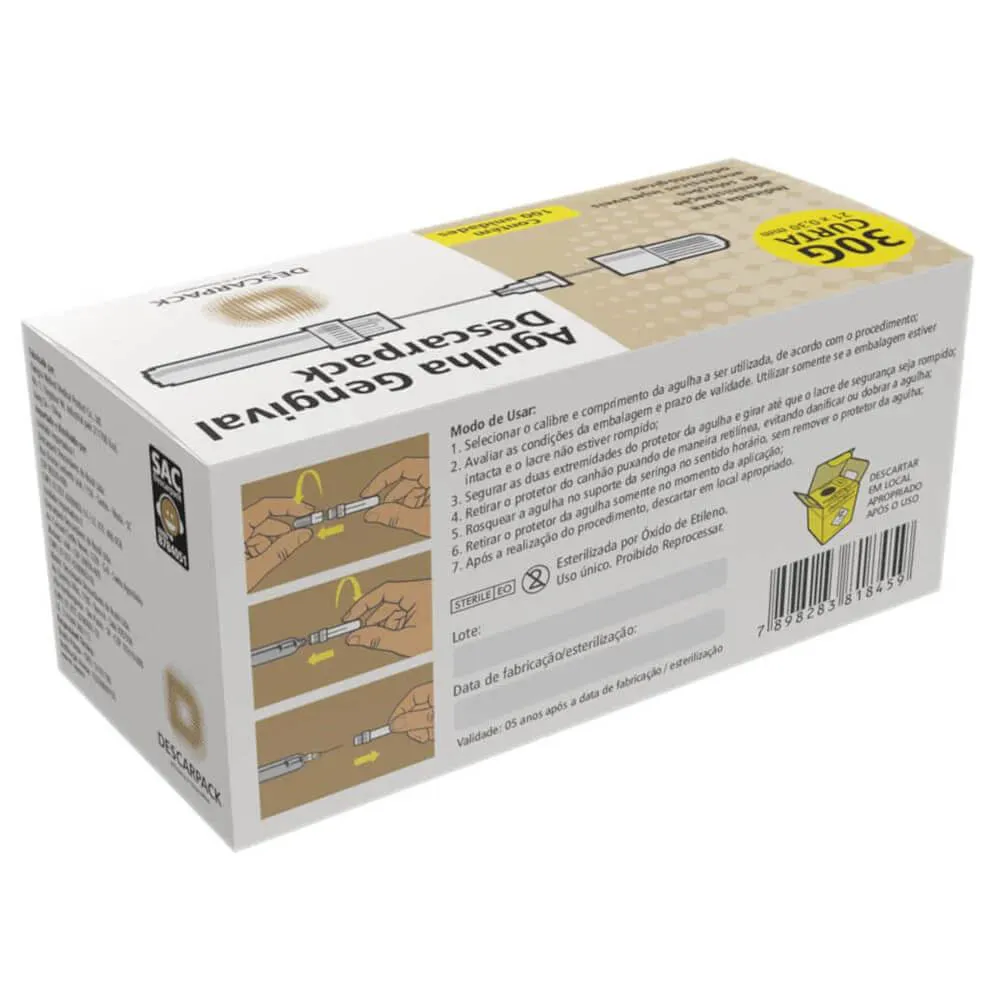 Kit Agulha Gengival Curta 30G 21X0,30Mm 500Un Descarpack