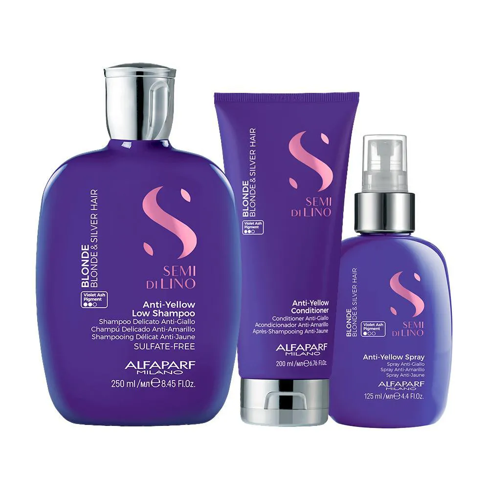 Kit Alfaparf Milano Professional Semi Di Lino Blonde Anti-Yellow -Shampoo e Condicionador e Leave-In