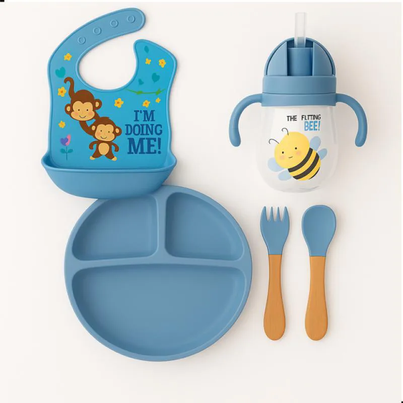 Kit alimentação infantil Completo – Prato, Talheres, Copo e Babador em Silicone | Seguro, Fofo e Prático! Torne as refeições do seu bebê mais divertidas, seguras e práticas com o Kit de Alimentação infantil Completo, desenvolvido especialmente para a fase de introdução alimentar. Composto por prato com divisórias e ventosa antiderrapante, talheres anatômicos, copinho antivazamento e babador com coletor de migalhas, este kit oferece tudo o que seu pequeno precisa para comer com conforto e autonomia! Benefícios do Kit: Kit 4 em 1: inclui prato com divisórias, colher e garfo, copinho com alças e babador com coletor. Material Seguro: todos os itens são feitos em silicone alimentar, livre de BPA, ftalatos e substâncias tóxicas. Design Inteligente: cores suaves e formatos anatômicos que estimulam a independência do bebê. Fácil de Limpar: resistente a manchas e odores, pode ser lavado à mão ou na lava-louças. Antiderrapante e Antivazamento: ideal para evitar sujeira e tornar as refeições mais tranquilas. Durável e Confortável: macio ao toque, resistente a quedas e super leve para o uso diário. Ideal Para: Bebês a partir de 6 meses, em fase de introdução alimentar (BLW). Perfeito para uso em casa, passeios ou viagens, garantindo praticidade e segurança em qualquer lugar. Especificações Técnicas: Material: Silicone grau alimentício Livre de BPA, PVC e ftalatos Idade recomendada: 6 meses ou mais Itens resistentes a temperaturas altas e baixas Pode ser usado em micro-ondas e lava-louças Cores: sortidas (conforme disponibilidade de estoque) Item incluso: 1 Prato com divisórias e ventosa 1 Colher e 1 Garfo de silicone e bambu 1 Copo de treinamento com alças antivazamento 1 Babador de silicone com coletor de migalhas