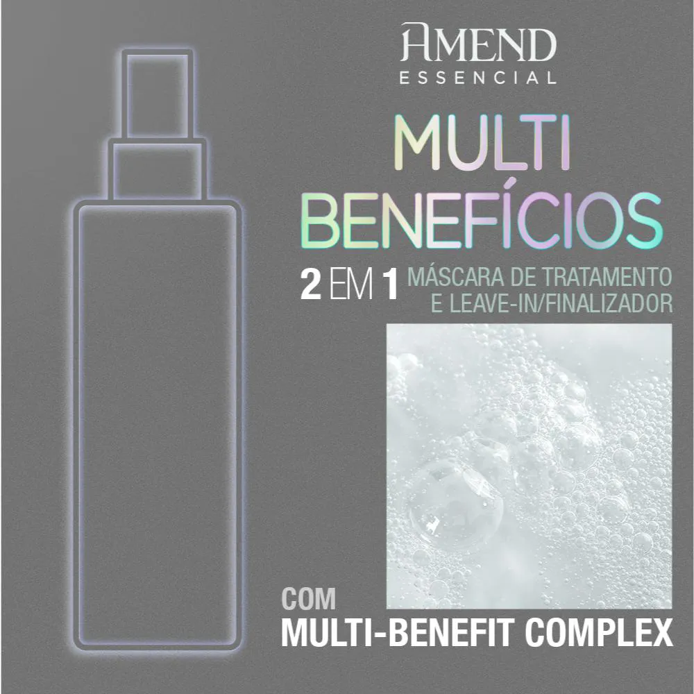 Fluído Restaurador Amend Essencial Multibenefícios Sua fórmula com o exclusivo Multi-Benefit Complex* repõe os aminoácidos perdidos, reconstrói, hidrata, retém a umidade natural e fortalece os fios. Os danos são reparados instantaneamente. Evita e ajuda a reparar pontas duplas, protege a cor, melhora a penteabilidade, elimina o frizz e mantém a elasticidade natural dos fios. Os cabelos ficam macios, revitalizados e muito mais brilhantes.