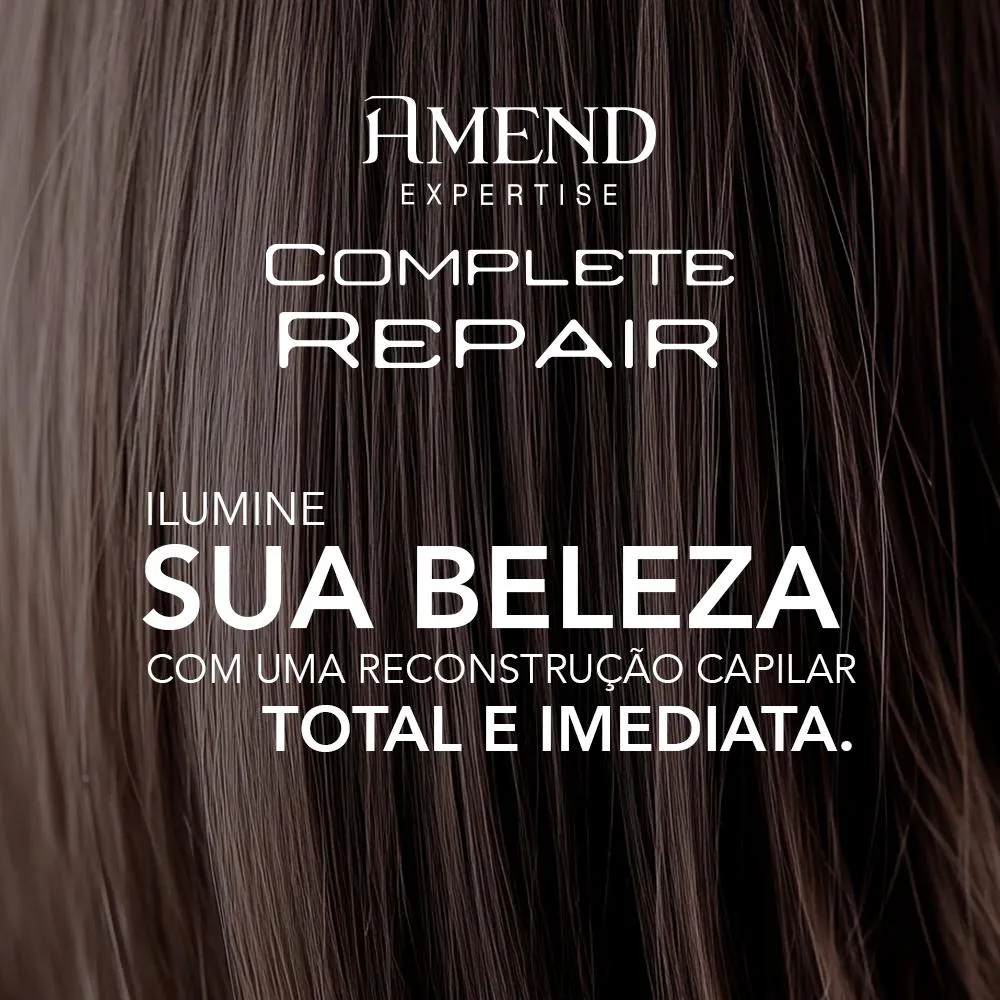 condicionador Reconstrutor Amend Expertise Complete Repair Condiciona, hidrata e reduz o frizz. Com Bio-Amino Reconstrutores* que agem na reparação profunda e no resgate da vitalidade, força, elasticidade e brilho. Cabelos sedosos e protegidos de danos futuros. Fórmula vegana.