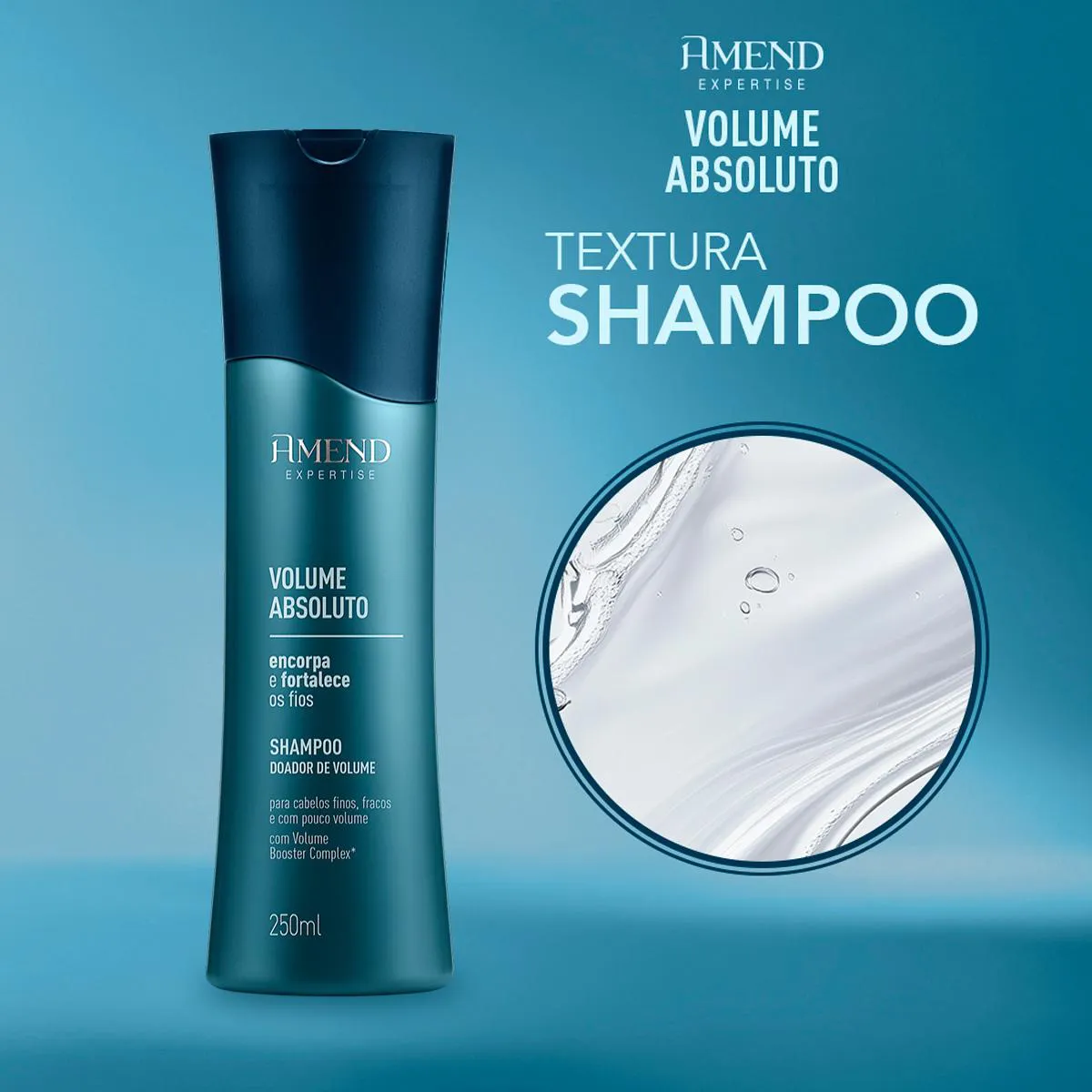 Este Kit Contém Amend Expertise Volume Absoluto - shampoo 250ml: promove limpeza suave, enquanto fortalece e encorpa cabelos finos e sem volume. Enriquecido com volume booster complex e aminoácidos biorreparadores, aumenta o diâmetro dos fios e repõe a massa capilar. Deixa o cabelo leve, brilhante e com volume natural. Amend Expertise Volume Absoluto - condicionador 250ml: hidrata profundamente, fortalece e repara a fibra capilar, promovendo corpo e resistência aos fios. Com proteção térmica, controla o frizz e deixa o cabelo mais cheio, saudável e com movimento.Conselho de Aplicação