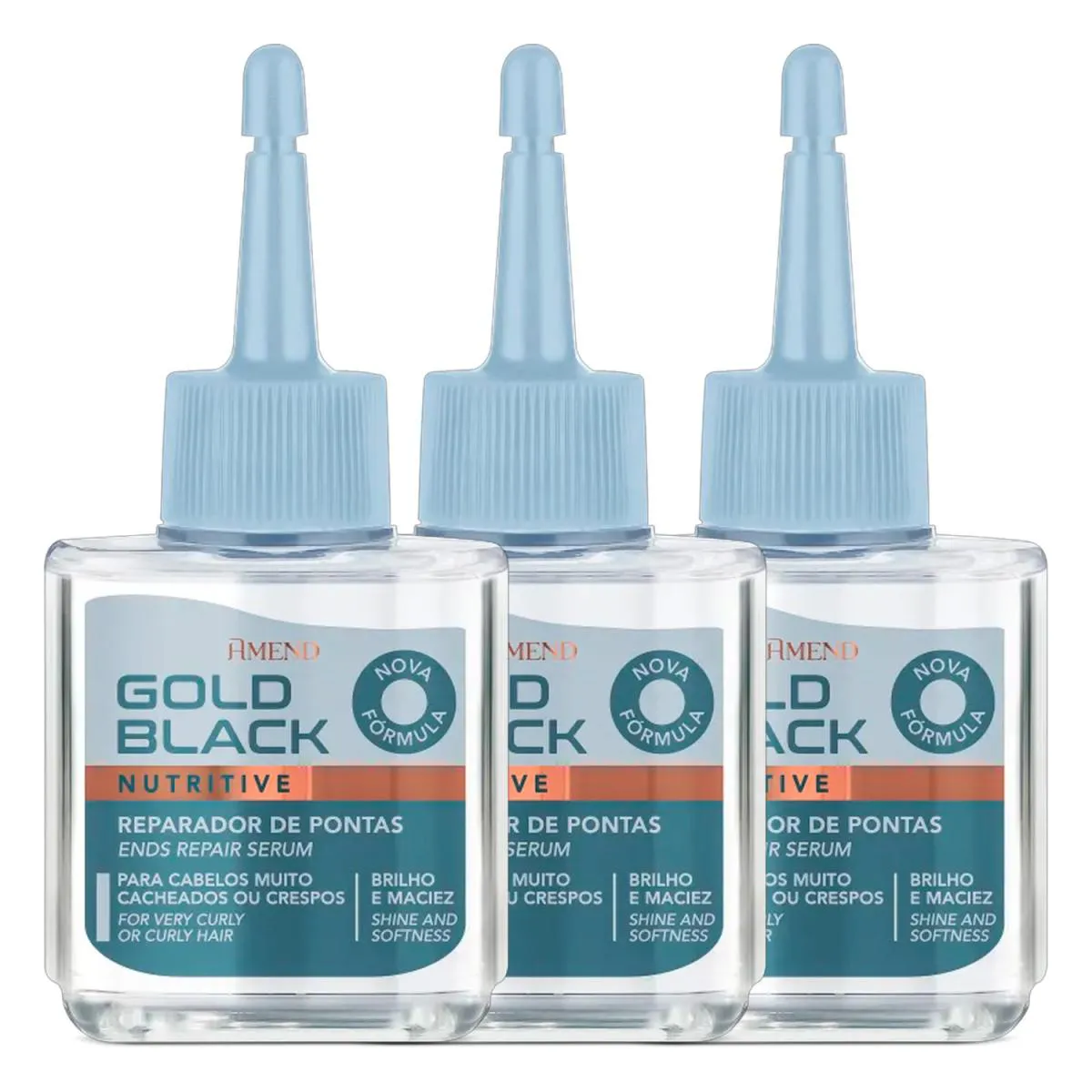 Amend Gold Black Reparador de Pontas 3x30ml (Brilho e Maciez Para o Seu cabelo)