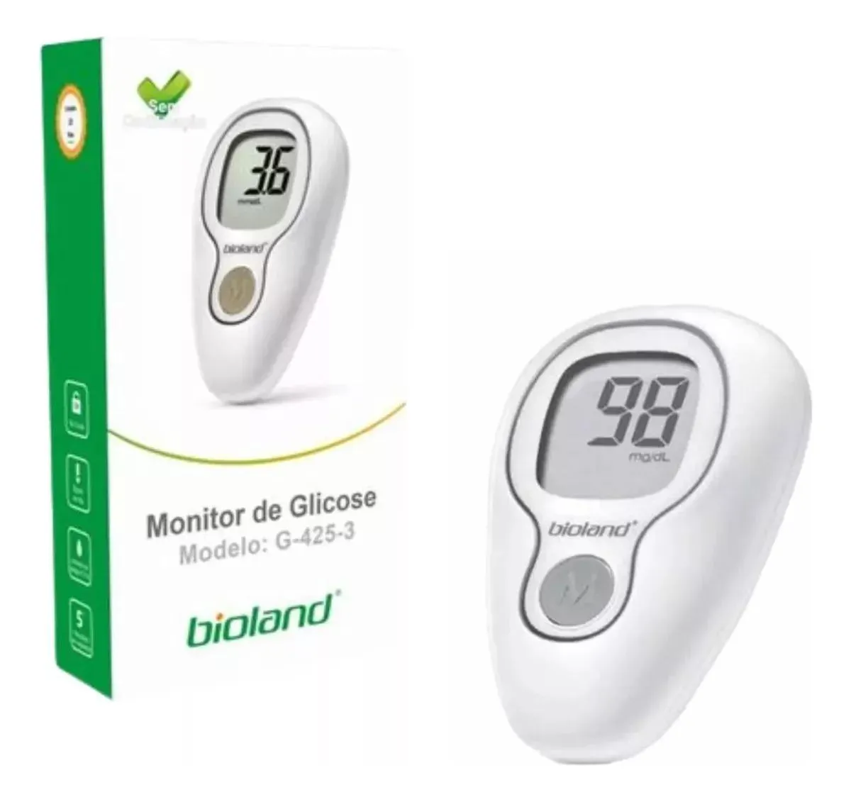 O Glicosímetro Bioland G-425-3 oferece segurança e precisão nas medições de glicose no sangue. Com características avançadas, como ejetor de fitas, resultados rápidos em 5 segundos e memória para 500 medições, contribui para o controle da diabetes, promovendo qualidade de vida. O aparelho é calibrado com plasmas padrões, assegurando medições precisas e confiáveis da glicose no sangue. O monitoramento regular da glicose é crucial para o controle eficaz da diabetes, reduzindo o risco de complicações associadas. Este modelo oferece funcionalidades como ejetor de fitas, resultados rápidos em 5 segundos, memória para 500 medições. Fornecendo praticidade e precisão para usuários. O KIT acompanha: – Monitor de Glicose G-425-3 – 25 Lancetas – 25 Fitas de Testede Glicose – 1 Lancetador – 2 Pilhas AAA – 1 Bolsa