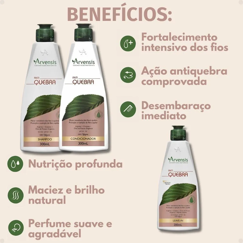 Kit Arvensis Anti Quebra: Shampoo 300Ml, Condicionador 300Ml e Leave-In 200Ml