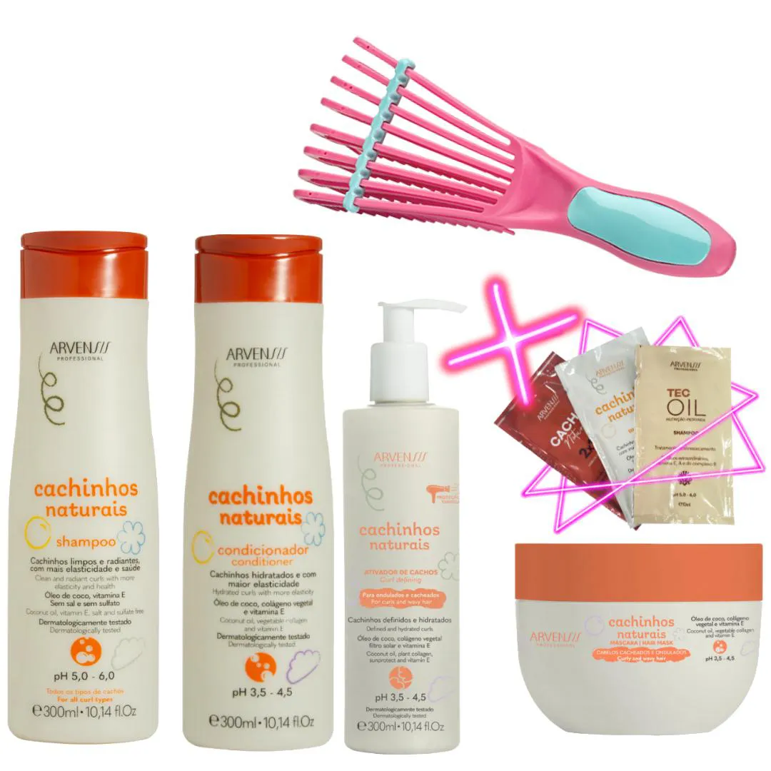 Kit Arvensis Cachinhos Naturais Ondulados + Escova Caracol