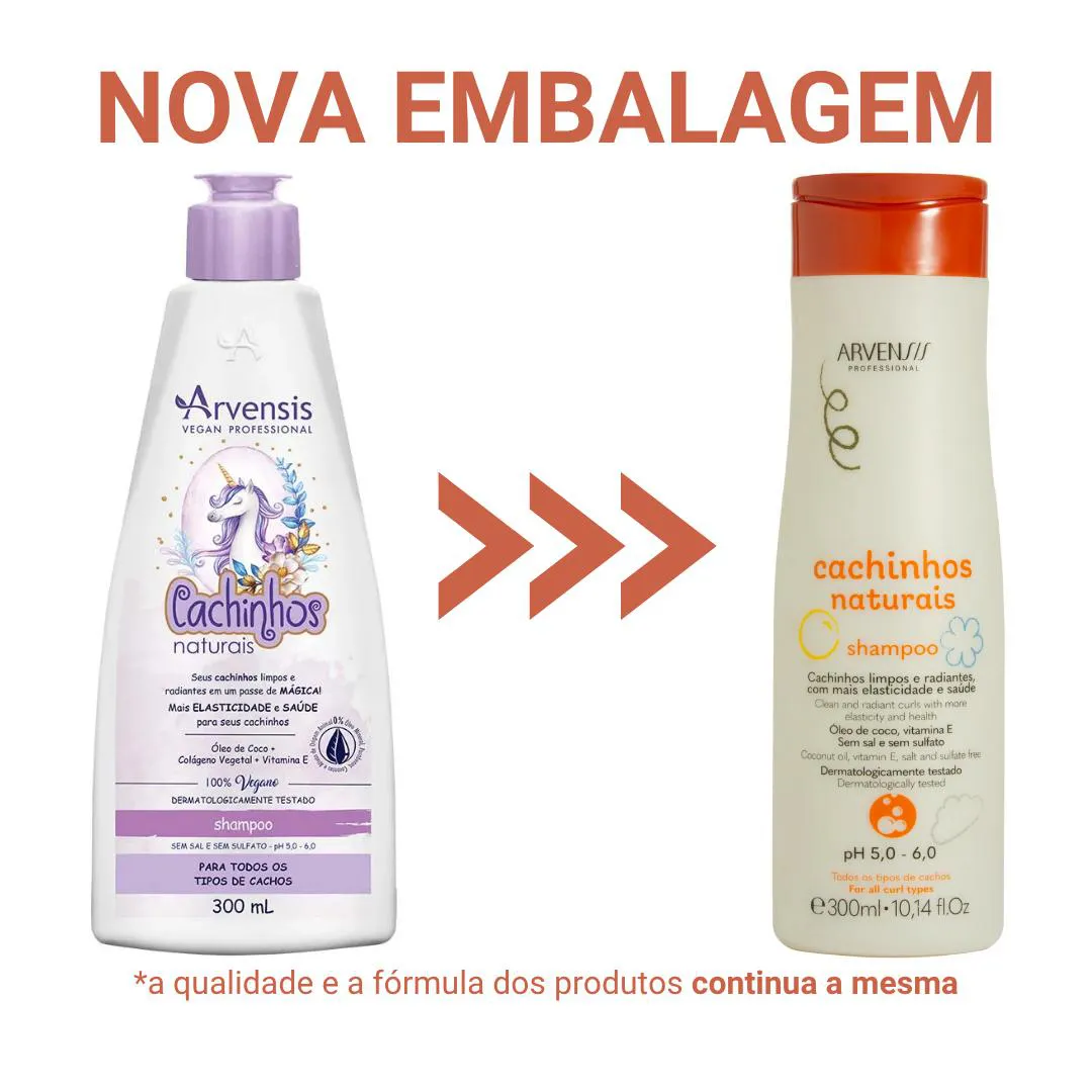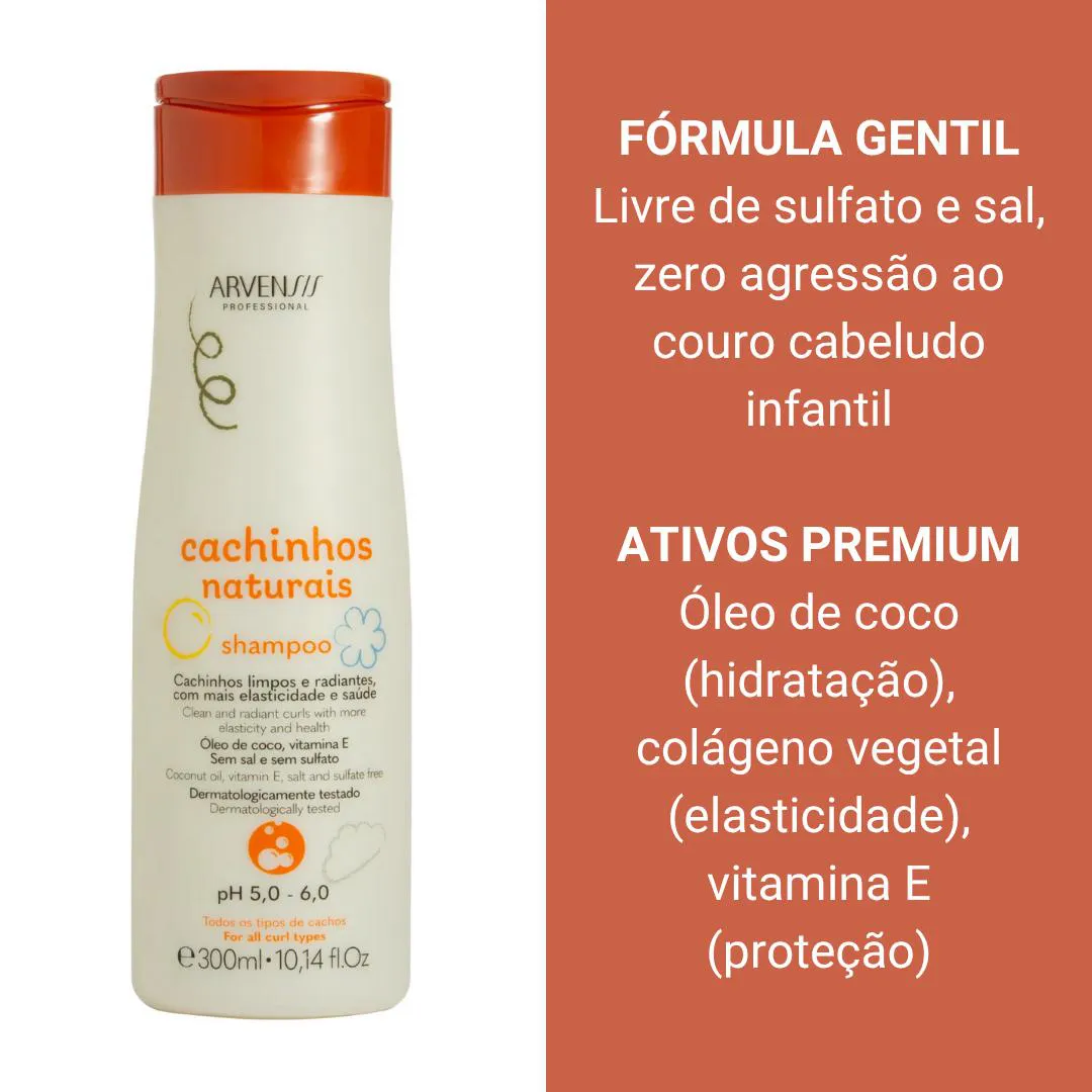 O Kit Arvensis Cachinhos Naturais Ondulados e Cacheados oferece uma rotina completa de tratamento para cachinhos infantis, cuidando desde a limpeza até a finalização. Com ativos poderosos como Óleo de Coco, colágeno Vegetal e Abacate, cada produto atua para hidratar, nutrir e definir os fios, mantendo o frizz sob controle e proporcionando um brilho natural incrível. A linha foi desenvolvida com fórmulas suaves e equilibradas, pensadas especialmente para cabelos infantis a partir dos 3 anos, garantindo resultados visíveis sem agredir os fios delicados.