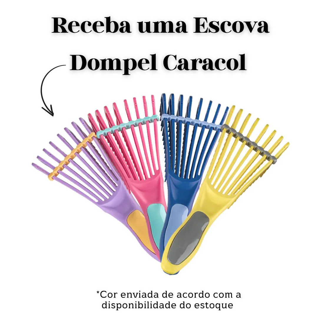 O shampoo promove uma limpeza suave sem sulfatos, deixando os cachos leves e hidratados. O condicionador e a máscara intensificam a hidratação e nutrição, reparando danos e devolvendo maciez e brilho. Para finalização, o ativador de cachos define e protege os fios. Todos os produtos possuem efeito memória, mantendo os cachos definidos por mais tempo, além de proteção UV contra danos externos. A Escova Dompel Caracol foi projetada especialmente para cabelos crespos, afro e cacheados, oferecendo uma experiência confortável e prática.