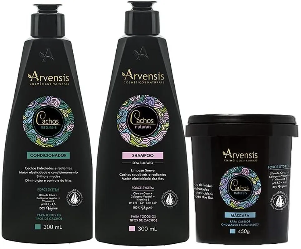 KIT ARVENSIS CACHOS NATURAIS ONDULADOS E CACHEADOS SHAMPOO + CONDICIONADOR 300ML + MáSCARA - 450G
