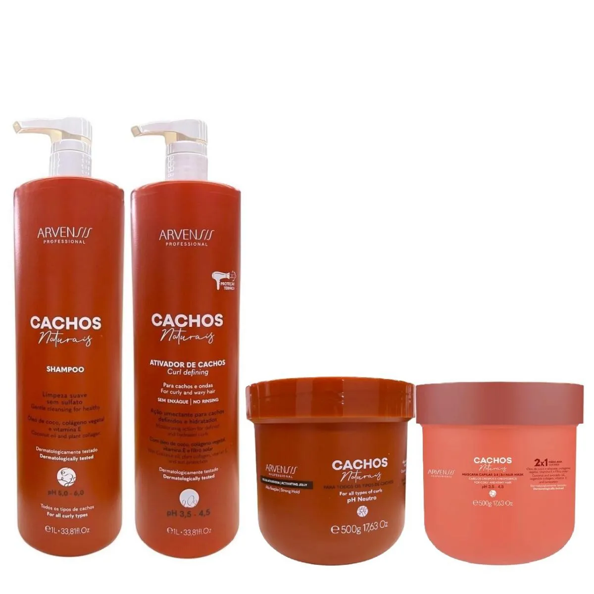KIT ARVENSIS CACHOS NATURAIS - SHAMPOO 1L +ATIVADOR DE CACHOS 1L + GELATINA ALTA FIXAçãO 500G + MáSCARA CAPILAR 2X1 500G