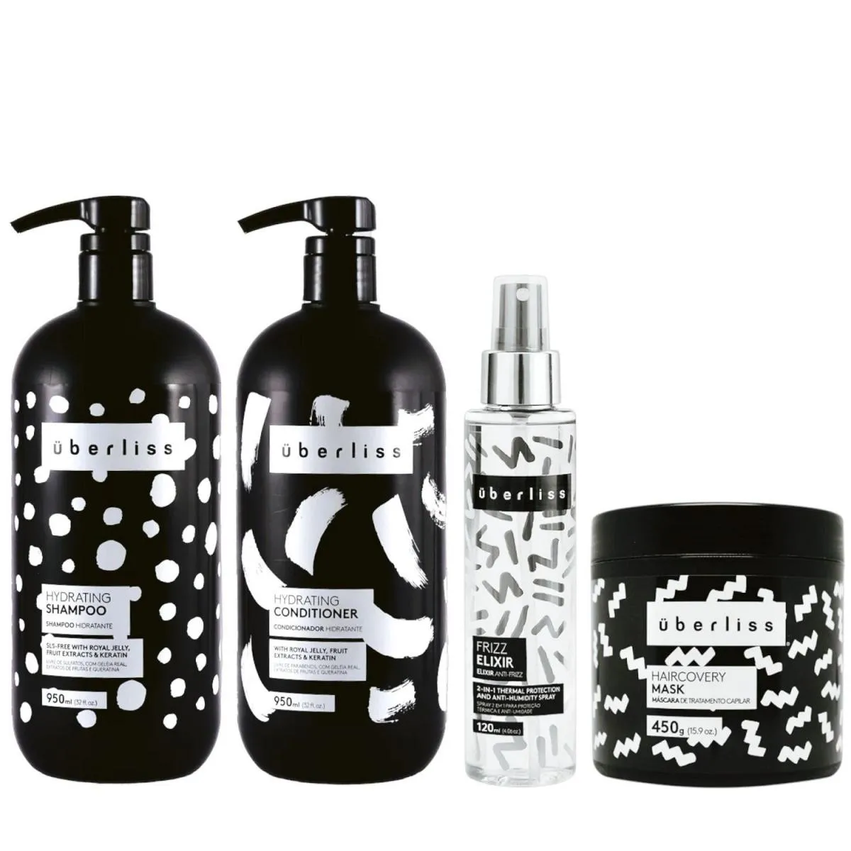 Kit Avlon Uberliss Hydrating - Shampoo 950Ml + Condicionador 950Ml + Máscara Haircovery 450G + Frizz Elixir 120Ml