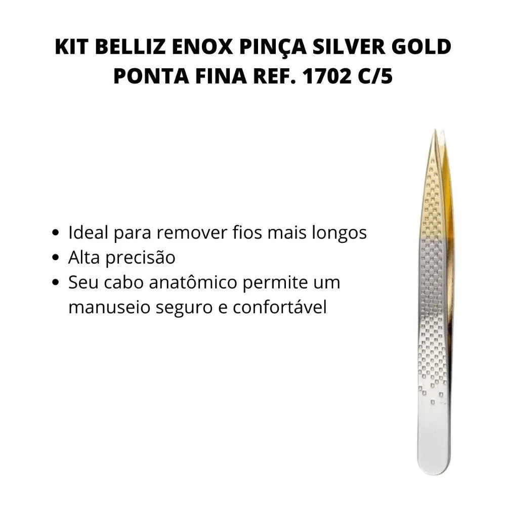 Kit Belliz Enox Pinça Silver Gold Ponta Fina Ref. 1702 C/5