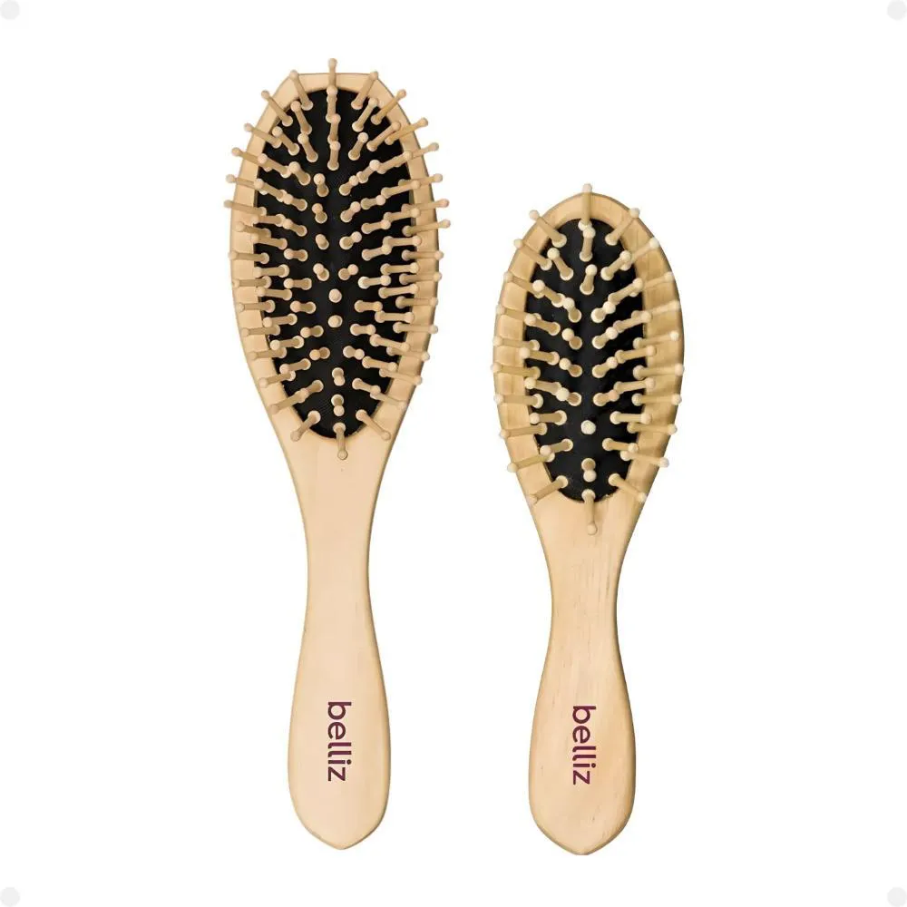 Kit Belliz Escova de cabelo Madeira: Cuidado Completo com 1 Escova Oval (cod.440) e 1 Escova Pequena (cod.443)