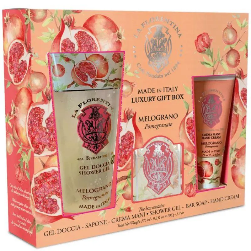 Desfrute de uma experiência sensorial única com o Kit La Florentina Big Ritual Pomegranate, ideal para cuidar da sua pele com todo o carinho que ela merece.