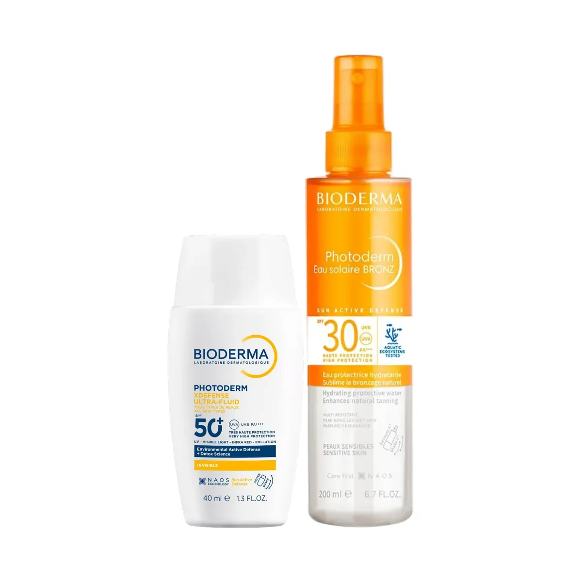 Kit Bioderma Photoderm Protetor Solar Facial XDefense Ultra-Fluid FPS 50+ Invisível 40ml + Óleo Bifásico Eau Solaire Bronz FPS 30 200ml