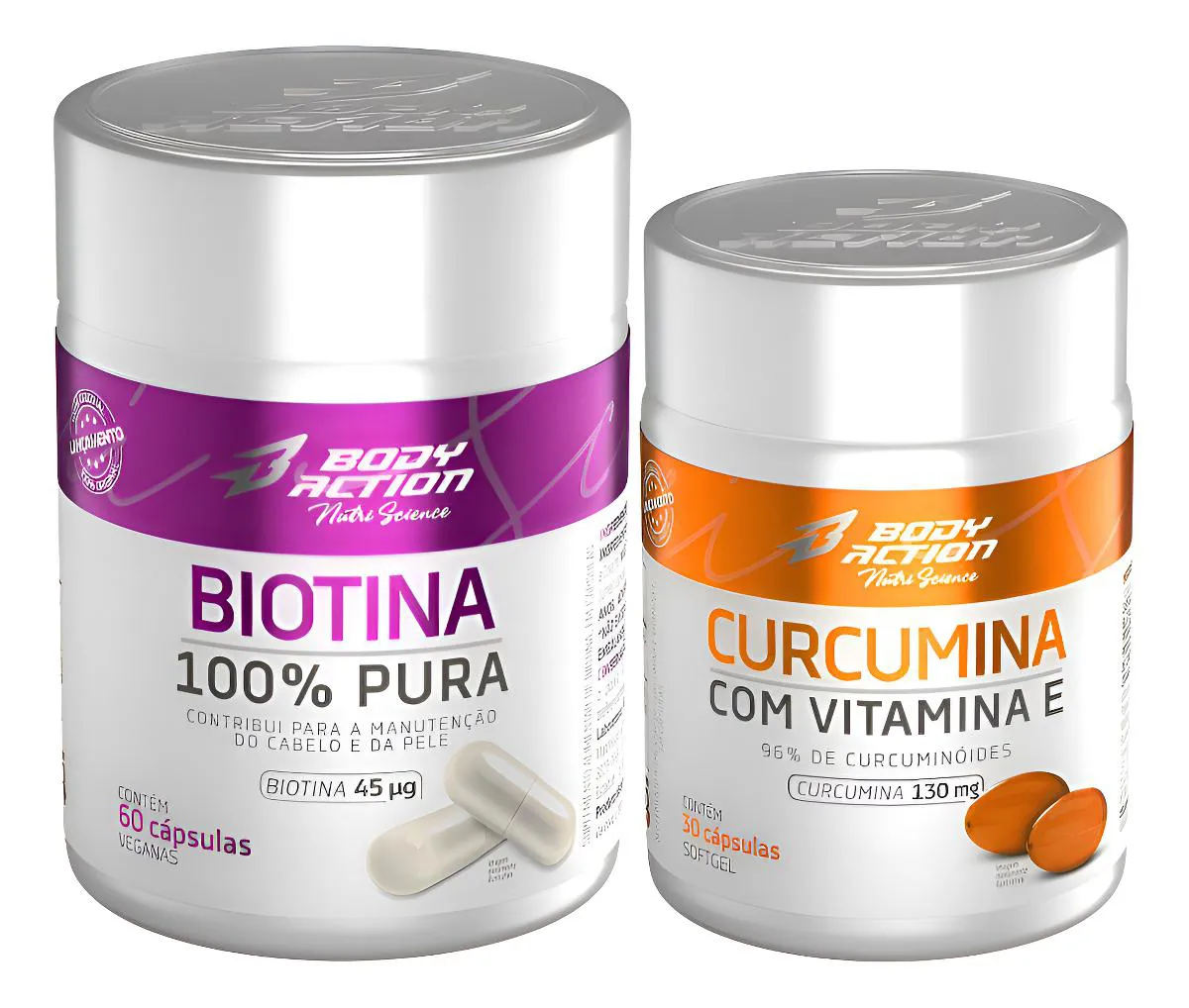 Kit Biotina 100% Pura + Curcumina com Vitamina e Bodyaction