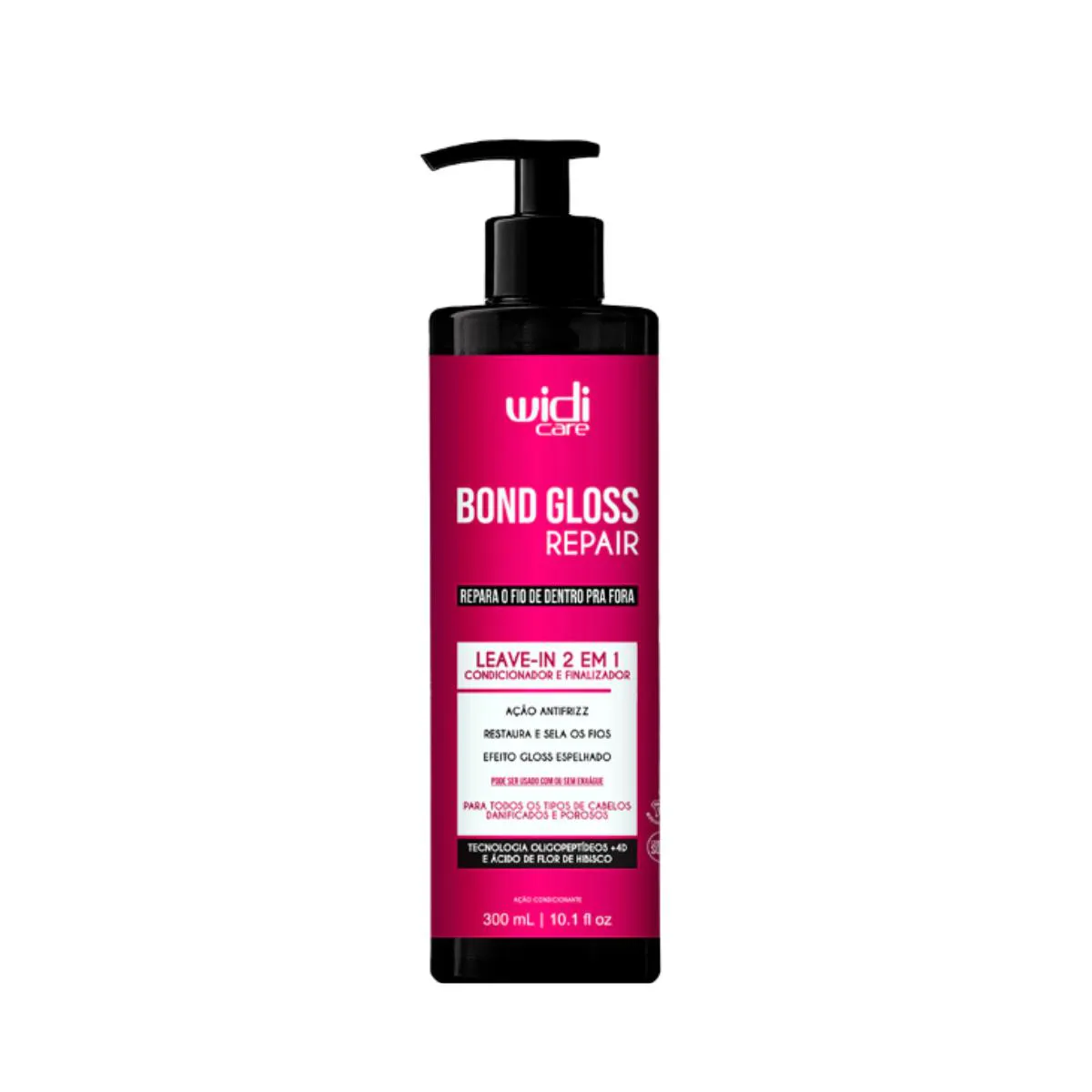 Kit Bond Gloss Repair - shampoo + Leave-in 300ml + máscara Líquida 200ml - Widi Care O kit contém: Bond Gloss Repair Shampoo fortalecedor 300ml - Widi Care Descrição: O SHAMPOO BOND GLOSS REPAIR Widi Care traz uma fórmula inovadora com Oligopeptídeos +4D e Ácido de Flor de Hibisco, que limpa suavemente e fortalece a estrutura molecular da fibra capilar, revertendo danos extremos no córtex, a parte mais profunda do fio, deixando os fios reparados e saudáveis. Ideal para todos os tipos de cabelos danificados e porosos, este é o primeiro passo da sua rotina de cuidado capilar para uma transformação inteligente dos fios. Modo de Uso: Aplique sobre os cabelos molhados, massageando o couro cabeludo para obter uma espuma cremosa. Deixe agir enquanto espalha a espuma por todo o comprimento do cabelo. Se necessário, repita a aplicação. Enxágue bem, e a seguir aplique a Máscara Líquida Widi Care Bond Gloss Repair. Uso diário. Use a linha Bond Gloss Repair para melhores resultados. Bond Gloss Repair Leave-In 2 em 1 Ação Condicionante 300ml - Widi Care Descrição: O Leave-in 2 em 1 Widi Care traz uma fórmula multifuncional que pode ser usada como condicionador e também como leave-in. Desenvolvido com a tecnologia Oligopeptídeos +4D e Ácido de Flor de Hibisco, penetra até o córtex, a parte mais profunda do fio, reconstruindo ligações capilares quebradas e restaurando a estrutura interna dos cabelos. Ideal para cabelos danificados e porosos, este multifuncional pode ser usado como condicionador, para desembaraçar e selar, ou como leave-in, protegendo os fios dos danos causados por coloração, químicas e calor, além de mantê-los protegidos contra danos futuros. • Ação antifrizz • Restaura e Sela os Fios • Efeito Gloss espelhado Modo de Uso: Após higienizar os fios com o Shampoo Bond Gloss Repair Widi Care, aplique por todo o comprimento e pontas. Deixe agir por 3 minutos e enxágue retirando todo o produto. Uso diário. Modo de uso como Leave In: Após a higienização, aplique nos cabelos úmidos ou secos, do comprimento às pontas. Em seguida, finalize com ou sem o uso de calor. Uso diário. Use a linha Bond Gloss Repair para melhores resultados. Bond Gloss Repair Máscara Líquida Lamelar Ação Condicionante 200ml - Widi Care Descrição: O Sérum Reconstrutor Widi Care traz uma fórmula inovadora com Oligopeptídeos +4D e Ácido de Flor de Hibisco, que penetra até o córtex, a parte mais profunda do fio, reconstruindo ligações capilares quebradas, restaurando a estrutura interna dos cabelos e devolvendo brilho intenso e visível. Ideal para todos os tipos de cabelos danificados e porosos, o sérum prolonga o efeito do tratamento e protege os fios contra novas agressões. • Reverte danos extremos • Restaura, sela e blinda os fios • Repara pontas duplas • Efeito gloss espelhado Modo de Uso: Após lavar os cabelos com o shampoo Bond Gloss Repair WIdi Care, aplique uma pequena quantidade da Máscara Líquida nos cabelos molhados. Enluve e massageie todo o comprimento dos fios por 10 segundos. Ao massagear, você irá perceber um creme se formando e um leve aquecimento do produto. Enxágue. Se você sentir necessidade, utilize o Leave-in 2 em 1 Bond Gloss Repair, para condicionador e/ou finalizar os fios. Uso diário. Use a linha Bond Gloss Repair para melhores resultados. Bond Gloss Repair Sérum Reconstrutor 60ml - Widi Care Descrição: O Sérum Reconstrutor Widi Care traz uma fórmula inovadora com Oligopeptídeos +4D e Ácido de Flor de Hibisco, que penetra até o córtex, a parte mais profunda do fio, reconstruindo ligações capilares quebradas, restaurando a estrutura interna dos cabelos e devolvendo brilho intenso e visível. Ideal para todos os tipos de cabelos danificados e porosos, o sérum prolonga o efeito do tratamento e protege os fios contra novas agressões. • Reverte danos extremos • Restaura, sela e blinda os fios • Repara pontas duplas • Efeito gloss espelhado Modo de Uso: Coloque uma pequena quantidade do sérum nas mãos e aplique nos fios secos ou úmidos, no comprimento e pontas. Uso diário. Use a linha Bond Gloss Repair para melhores resultados.