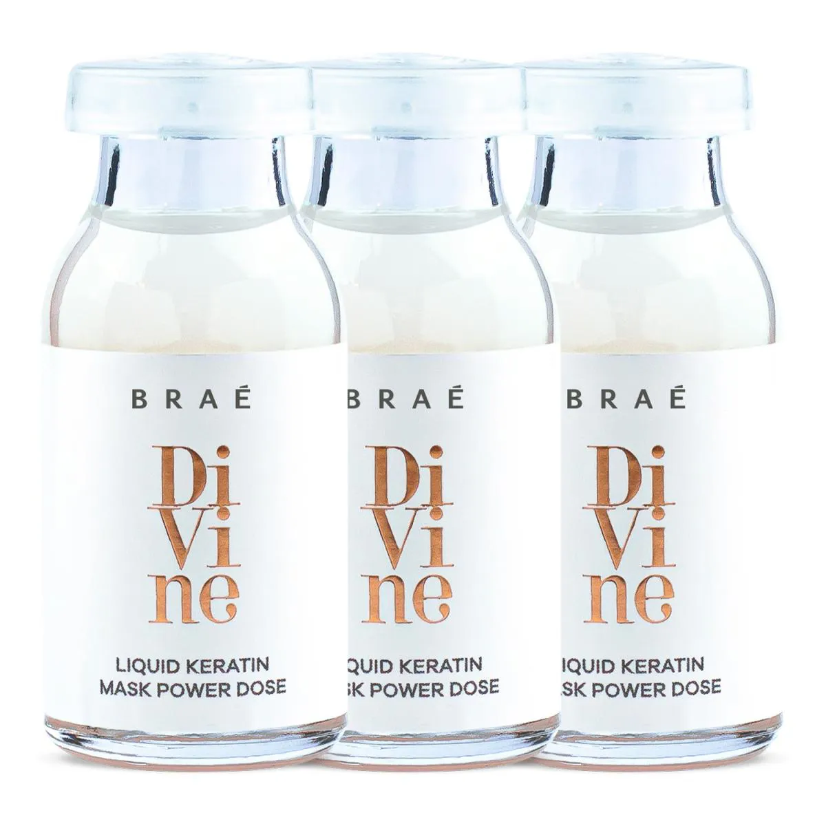 O Braé Divine Kit é um conjunto profissional de três ampolas concentradas, desenvolvido para restaurar profundamente os fios e trazer hidratação intensa. Ideal para revitalizar cabelos ressecados e opacos, este kit transforma a saúde dos seus fios com resultados rápidos e visíveis. O Braé Divine Kit 3 Ampolas é perfeito para quem busca um tratamento profissional que pode ser feito em casa. Redescubra a beleza e o brilho dos seus cabelos com este cuidado especial! Principais Benefícios: - Hidratação Intensiva: Repõe a umidade essencial nos cabelos, eliminando o ressecamento e proporcionando maciez extrema. - Ação Antioxidante: Protege os fios contra os danos causados por agentes externos, como poluição e raios solares. - Fórmula Concentrada: Enriquecida com ingredientes premium que penetram profundamente na fibra capilar, promovendo brilho e leveza.