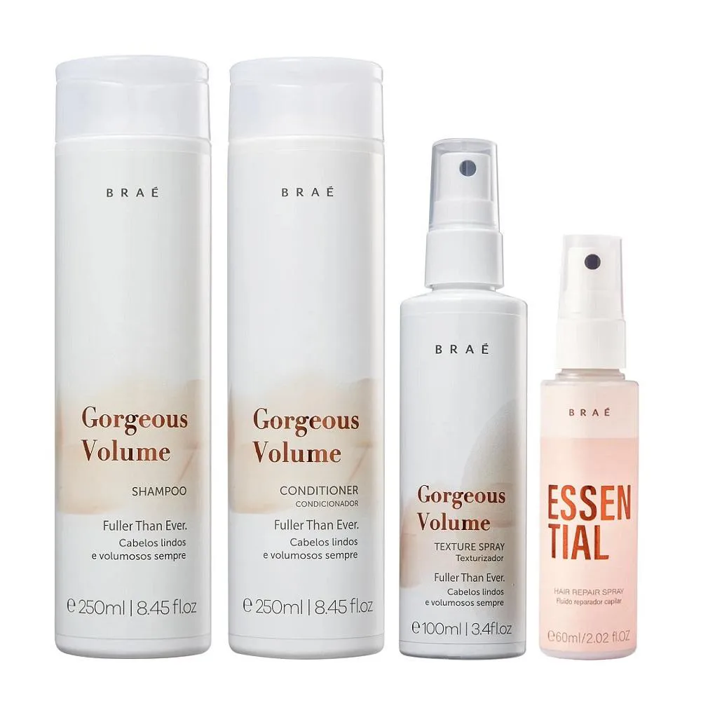 Kit Braé Gorgeous Volume - Shampoo & Condicionador 250Ml + Spray Texturizador 100Ml + Essential Spray 60Ml