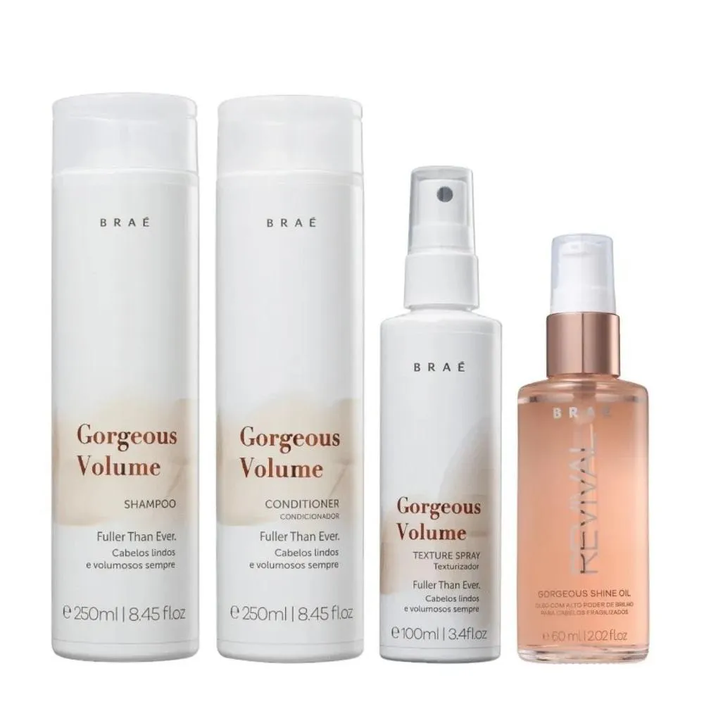 Kit Braé Gorgeous Volume - Shampoo & Condicionador 250Ml + Spray Texturizador 100Ml + Revival Óleo Gorgeous 60Ml