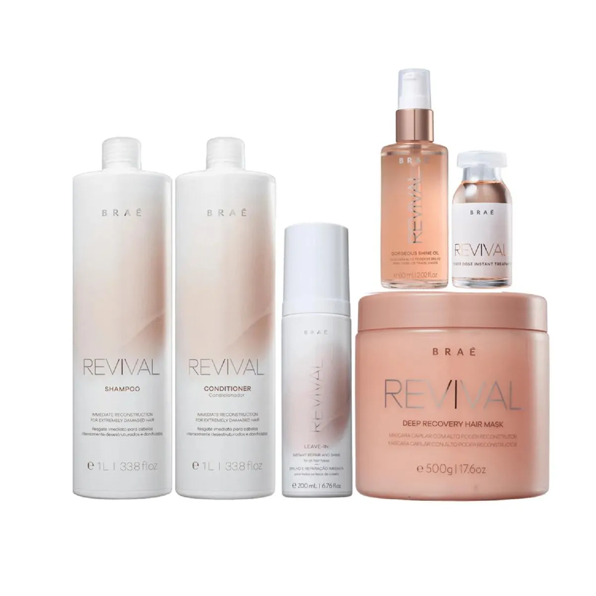 KIT BRAé REVIVAL-SHAMPOO 1L+CONDICIONADOR 1L+MáSCARA 500G+LEAVE-IN REVIVAL 200ML+ÓLEO GORGEOUS 60ML+AMPOLA REVIVAL 13ML