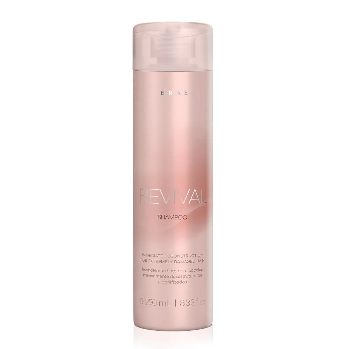 Braé Revival - shampoo 250ml: limpa de forma leve e prepara o cabelo para receber o tratamento condicionante. Os compostos vitamínicos presentes na fórmula resgatam gradativamente as camadas fragilizadas dos fios. Deixa os cabelos ainda mais brilhantes e resistentes.