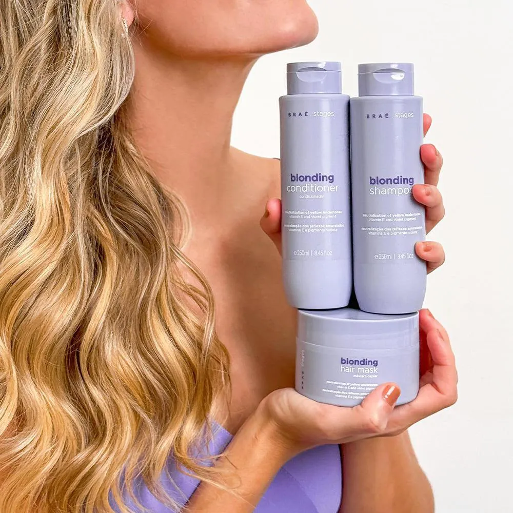 Kit Braé Stages Blonding Shampoo Máscara Leave-in (3 Produtos)