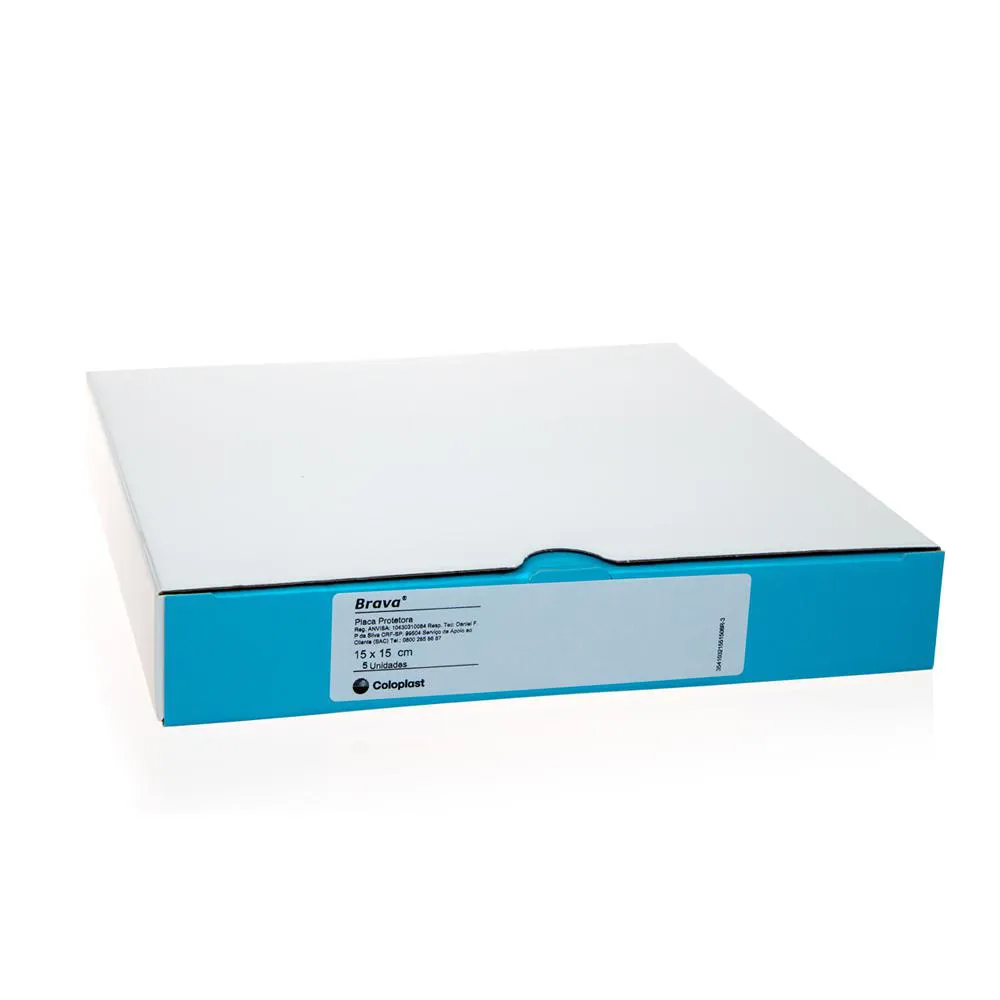 A placa protetora Brava é um produto confortável para a pele e deve ser usado sob a base adesiva. Ela absorve a umidade e, assim, minimiza o risco de maceração da pele além de fornecr proteção para a pele periestomal, formando uma segunda pele para aplicação de um equipamento coletor.