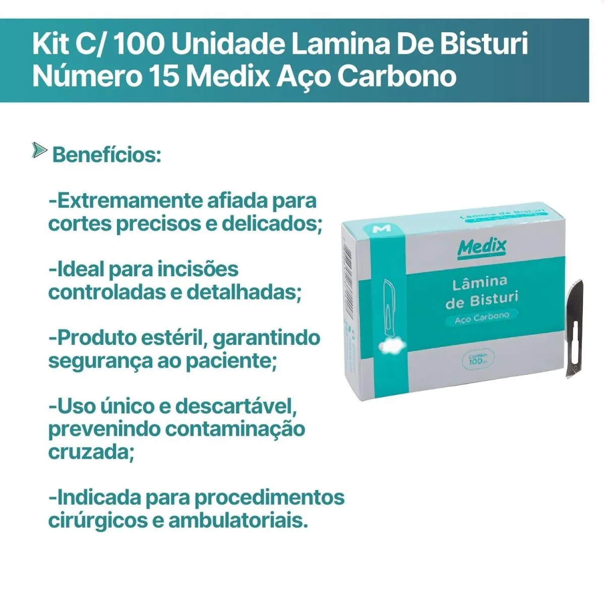 Kit C/ 100 Unidade Lamina Bisturi Número 15C Medix Aço Carb