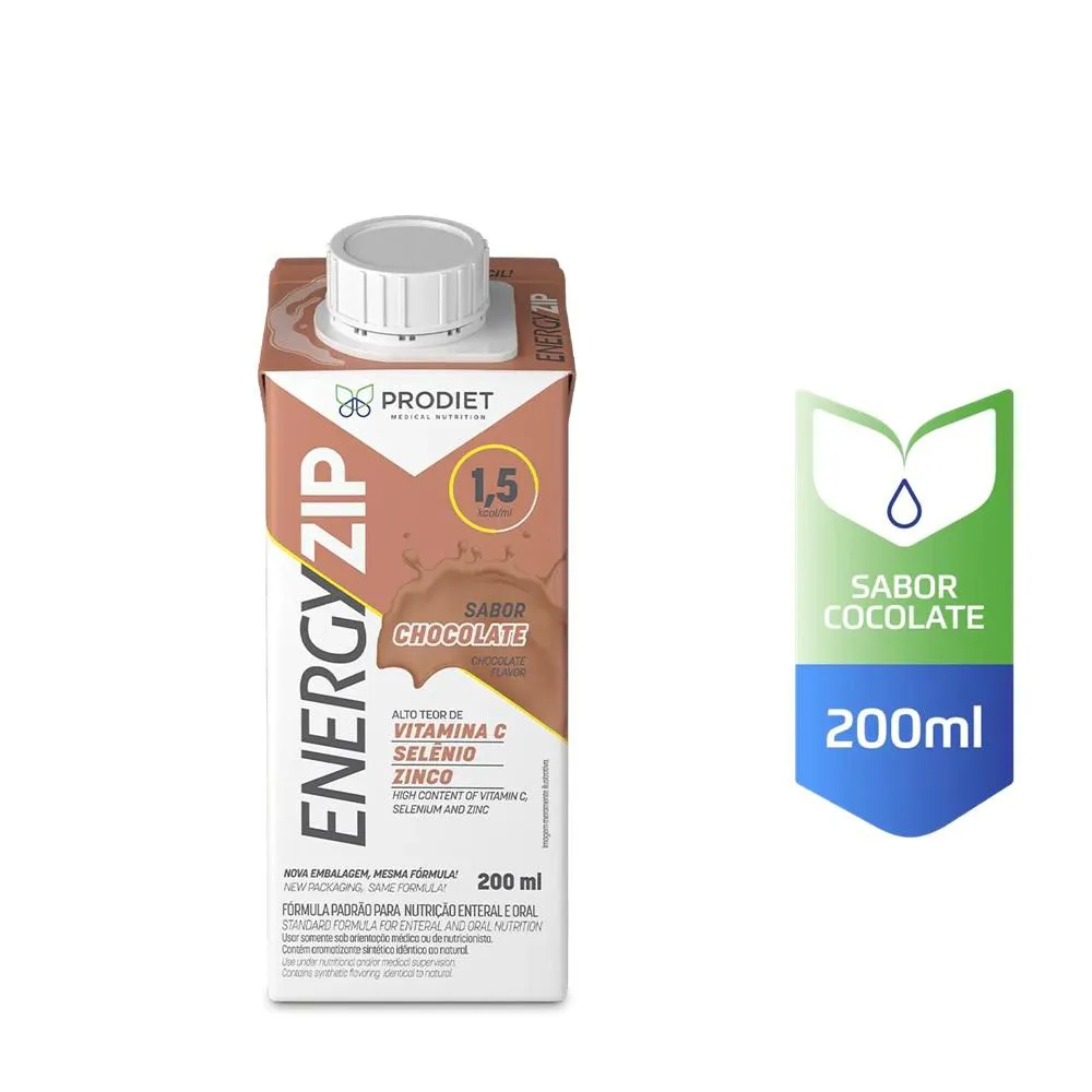 Suplemento nutricional líquido sabor chocolate com proteínas, vitaminas e minerais. Energyzip Chocolate - Frasco 200ml O Energyzip Chocolate é um suplemento alimentar líquido pronto para beber, desenvolvido para complementar a alimentação diária de adultos e idosos. Sua fórmula contém proteínas, carboidratos, fibras, vitaminas e minerais que auxiliam na reposição de energia, suporte nutricional e manutenção do equilíbrio da dieta. Por ser pronto para consumo, é prático para ingestão entre refeições ou em situações de ingestão alimentar reduzida. Aplicação e uso Produto pronto para consumo. Agitar bem antes de beber. Pode ser consumido: entre refeições como complemento nutricional em situações de ingestão alimentar reduzida Consumir preferencialmente conforme orientação de médico ou nutricionista.