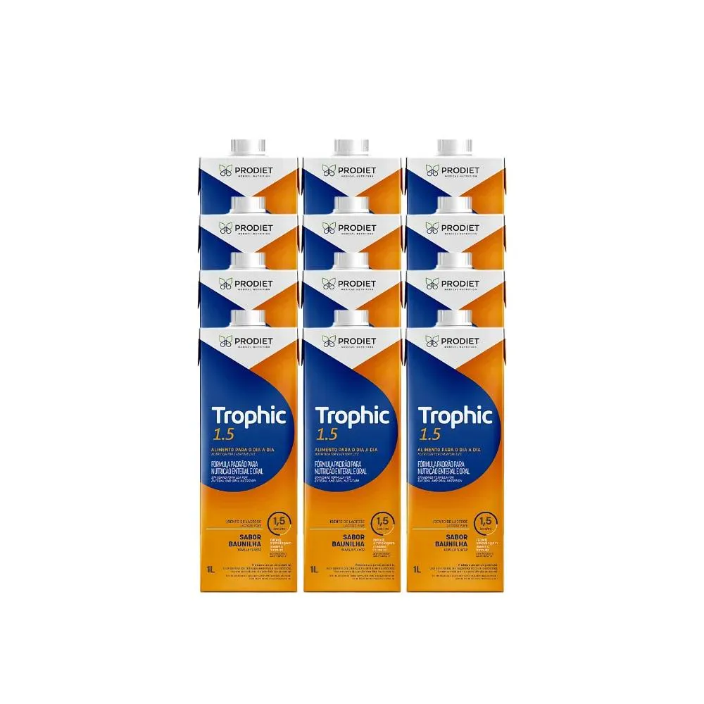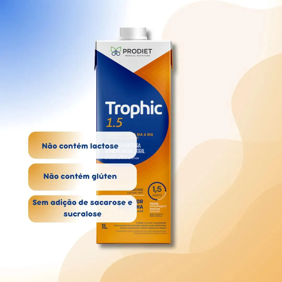 Dieta nutricional líquida hipercalórica sabor baunilha para suporte nutricional completo. Trophic 1.5 Sabor Baunilha - 1 litro O Trophic 1.5 Baunilha é uma dieta nutricional líquida hipercalórica desenvolvida para auxiliar no suporte nutricional de pessoas com necessidades energéticas aumentadas ou ingestão alimentar reduzida. Fornece proteínas, carboidratos, gorduras, vitaminas e minerais que contribuem para a manutenção do estado nutricional e fornecimento de energia. É indicado para uso oral ou por via enteral, conforme orientação de profissional de saúde, sendo utilizado em situações de suporte nutricional clínico ou domiciliar. Advertências Este produto não é medicamento. Deve ser utilizado sob orientação de profissional de saúde. Contém derivados de leite. Conservar em local fresco e seco. Após aberto, manter refrigerado e consumir em até 24 horas.