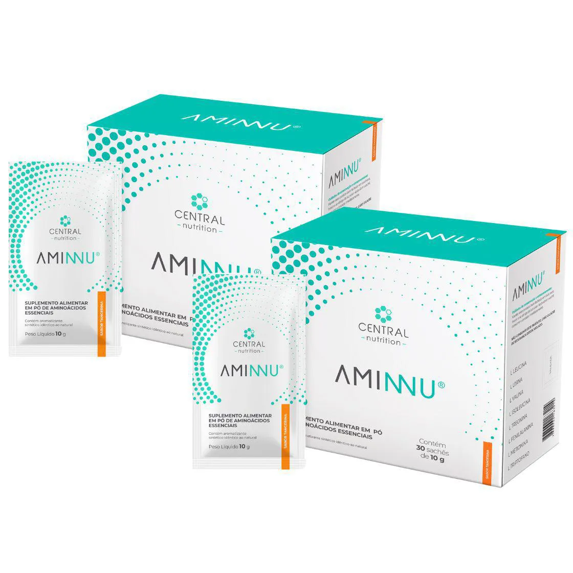 Kit C/2 Caixas Aminnu 10g Com 30 Sachês - Central Nutrition - Sabor Tangerina