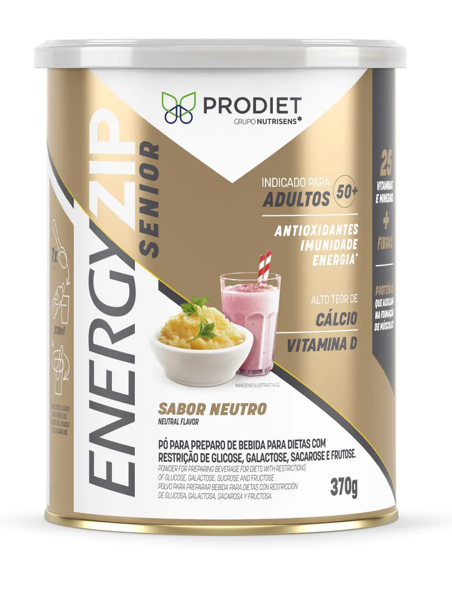 Suplemento nutricional para adultos e idosos com proteínas, fibras, vitaminas e minerais. EnergyZip Sênior Sabor Neutro - Lata 370 gr O Energyzip Senior Sabor Neutro é um suplemento alimentar em pó formulado para complementar a alimentação de adultos e idosos, especialmente acima de 50 anos. Sua composição oferece proteínas de alto valor biológico, fibras, vitaminas e minerais que auxiliam na manutenção da massa muscular, no suporte à saúde óssea, na reposição de energia e no fortalecimento do sistema imunológico. O sabor neutro facilita a inclusão na rotina alimentar, podendo ser misturado em bebidas ou em preparações doces e salgadas, sendo indicado para pessoas com ingestão alimentar insuficiente ou com necessidades nutricionais aumentadas. Advertências Este produto não é medicamento. Não substitui uma alimentação equilibrada e hábitos de vida saudáveis. Produto indicado para adultos. Contém leite e lactose. Pode conter derivados de soja. Conservar em local seco, fresco e ao abrigo da luz. Após aberto, manter a embalagem bem fechada e consumir preferencialmente em até 30 dias.