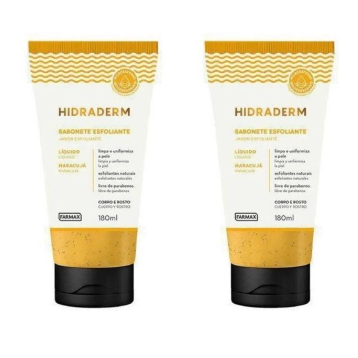 Kit c/2 sabonetes Liquido Hidraderm Esfoliante 180ml Maracujá.